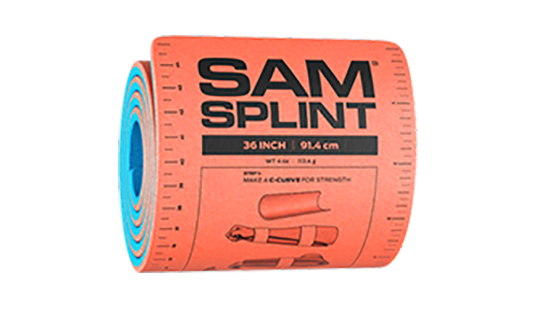 SAM Splint er enkel å rengjøre, gjenbrukbar og krever kun tape eller bandasje for å gi nødvendig stabilitet. Tilgjengelig i flere størrelser – inkludert en rullet versjon for kompakt oppbevaring.